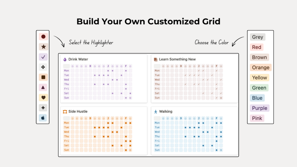 - Customizable Habit Grids - Select from various colors, icons, and settings