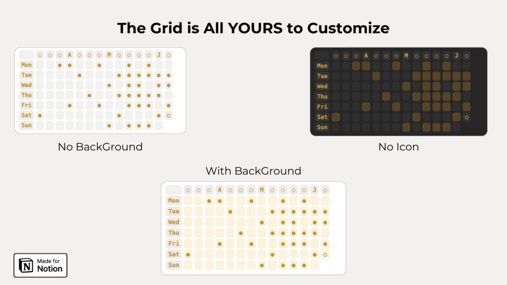- Customizable Habit Grids - Select from various colors, icons, and settings