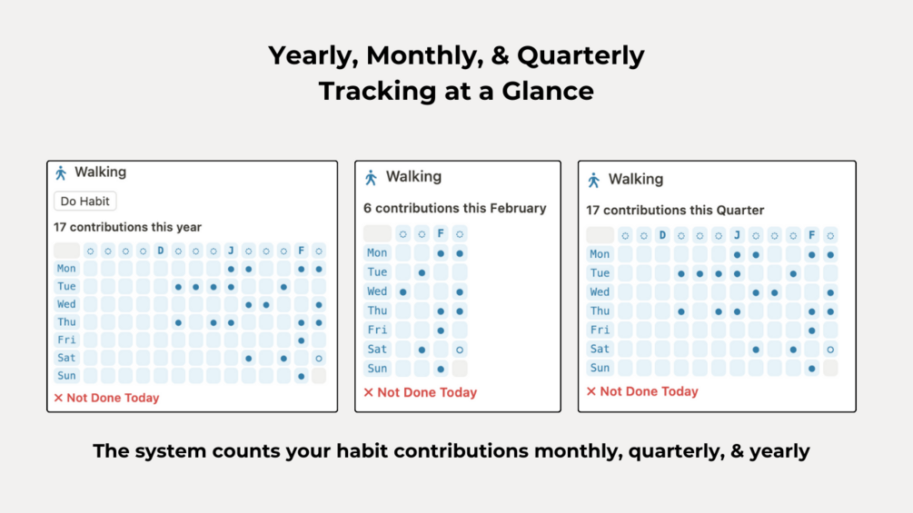 This interactive dashboard makes it easy to track your habit progress over any timeframe.